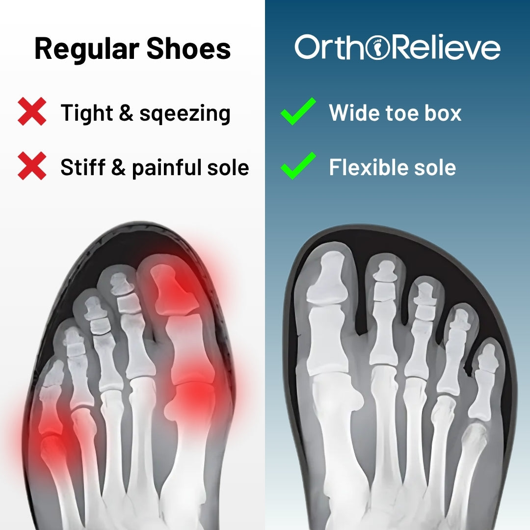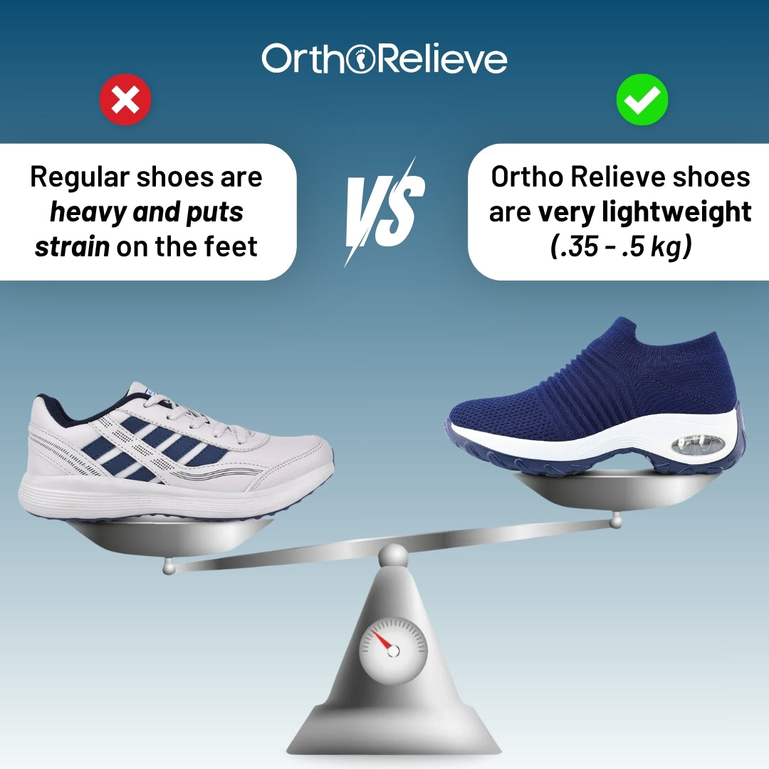 Hledáte úlevu od bolesti nohou? Naše boty mají prémiové ortopedické vložky a vynikající podporu klenby, které jsou navrženy tak, aby snižovaly zátěž vašich nohou. Naši zákazníci hlásí snížení bolesti způsobené plantární fasciitidou, ostruhami, vbočenými palci, neuropatií a kolapsem klenby. Vložka Ortho Relieve podporuje lepší držení těla a správné držení těla, což vám pomáhá pohodlněji se pohybovat po celý den.