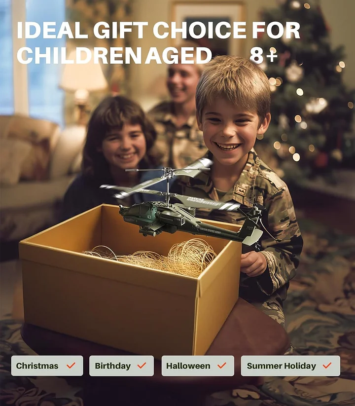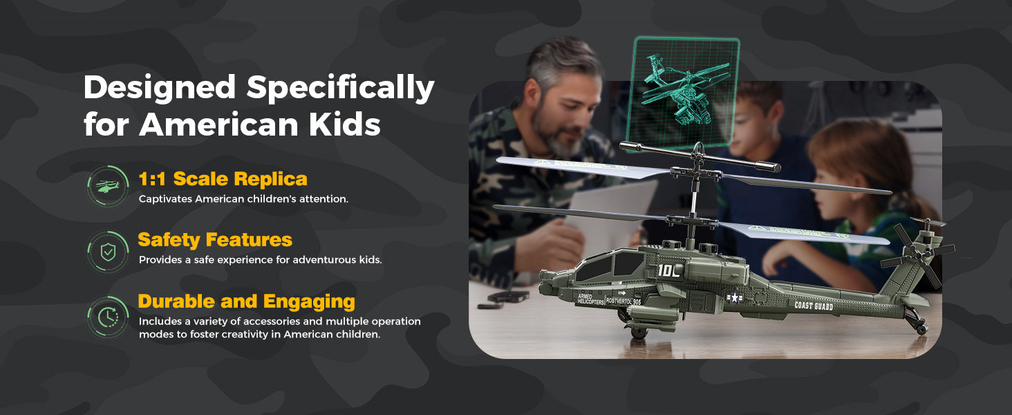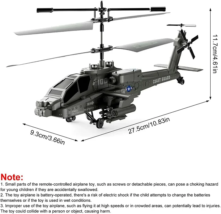Tento dálkově ovládaný bojový vrtulník, inspirovaný skutečnými vojenskými vrtulníky, se vyznačuje propracovanými detaily a vysoce kvalitním zpracováním. Poháněn dvěma bezjádrovými motory poskytuje silný pohon a pohotovou manévrovatelnost.