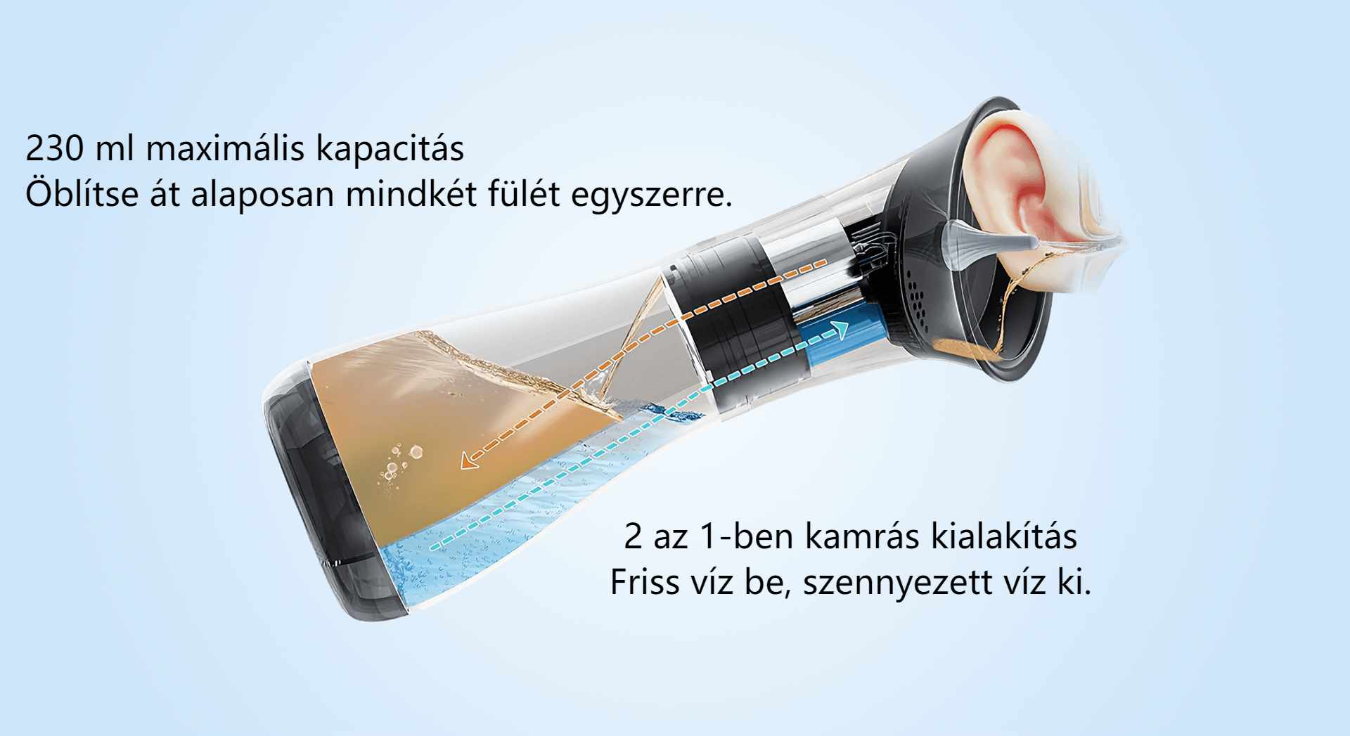 Tisztavíztartály űrtartalma: MAX. 230ML